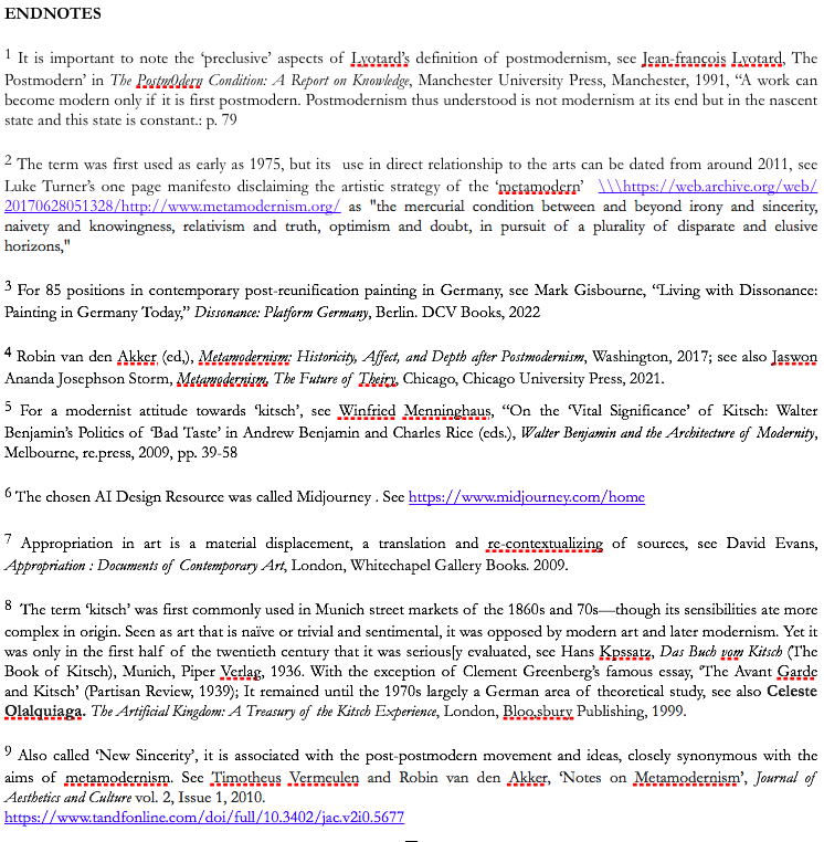 It is evident at first sight that Wilde’s Squirrel Monkey and floral motif paintings have little to so with investigative zoology or botanical resources. But rather operate as generative pictorial tropes that deal explicitly with affective sentiment and actively challenge the negative history associated with the aesthetics of kitsch.5 In fact the artist makes it quite clear that the subject matter is informally chosen in relation to his use of an AI system that generated the source images, and which in turn served as an initial point of departure for the paintings.6 This stands in marked distinction to the artist’s earlier series of themed works (focusing on questions of human and constituent identities), created in relation to sources of conceptual appropriation and aesthetic displacement.7 In the present instance we might speak alternatively of a translation from contemporary virtual self- generative technologies to pictorial states of re-materialisation, subsequently expressed in meticulous terms as hyperrealist paintings. The reference to ‘kitsch’ is to intentionally acknowledge that kitsch as a term derives from the mid-nineteenth century, at the same incipient preclusive moment of modern art.8 For kitsch shares in the same affective background sources (namely modern life), except that it is generally distinguished through a series of sensory dichotomies, defined as the nostalgic and the melancholic, the remembered and the recollected, with a yearning for the immediacies of sensory visual pleasure. Hence far from being a negative impulse its sentimental evocation connotes the good will intended by recent ideas of metamodernism, that is to say a progressive pursuit of creative sincerity in the knowledge and acceptance of increased ironic self-understanding. Since irony is linguistically dialectical in nature, the saying of one thing that carries the inference of its opposite, Wilde’s paintings express synthetic states of ironical sincerity.9